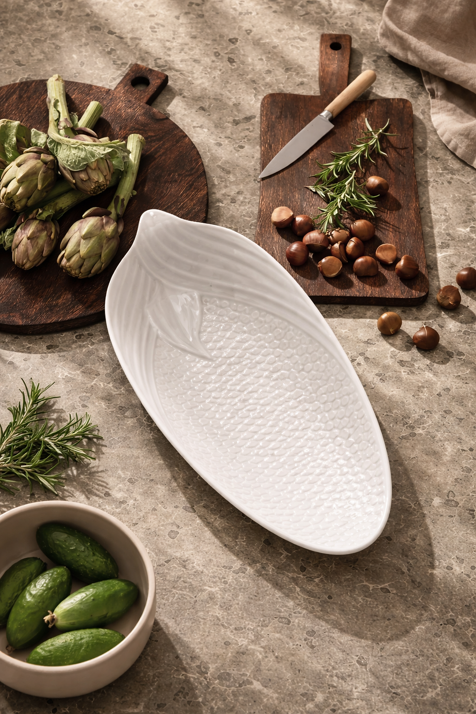 Esta coleção nasce do relevo, do que sai para fora, do que não aceita ficar plano, nasce do desafio de moldar volumes que insistem em cair, de empurrar a cerâmica até ao limite da sua força, de testar a moldura que a contém e, às vezes, de a partir.